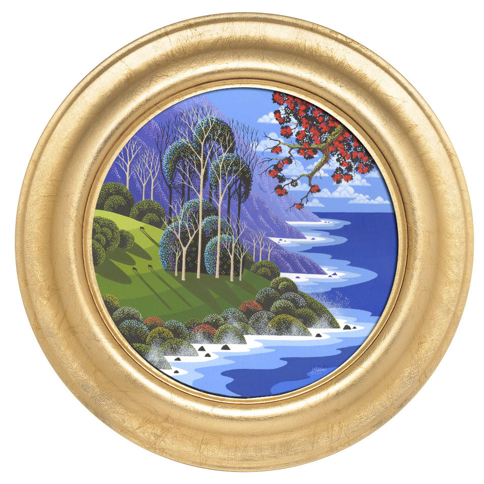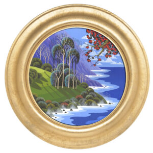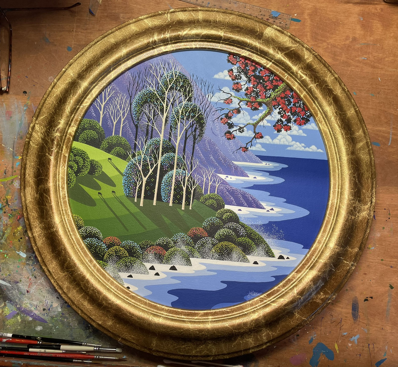 I just finished up a new painting. I haven’t done a big, round one in a while, but I knew I had a frame in storage so, that’s the one I was working on. I’m very happy with it too.