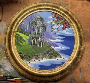 In case you haven’t noticed, I’ve taken a different direction with my paintings. It is my Big Sur series. And yes, for those who know his work, I am trying to channel the incredible Eyvind Earle. Someone asked me if I had studied with him. No, but I have studied his art.